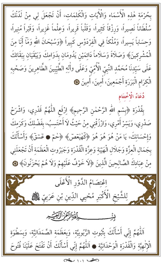 Muhyiddin İbn. Arabi hazretlerine ait hergün okunarak (devr edilen)