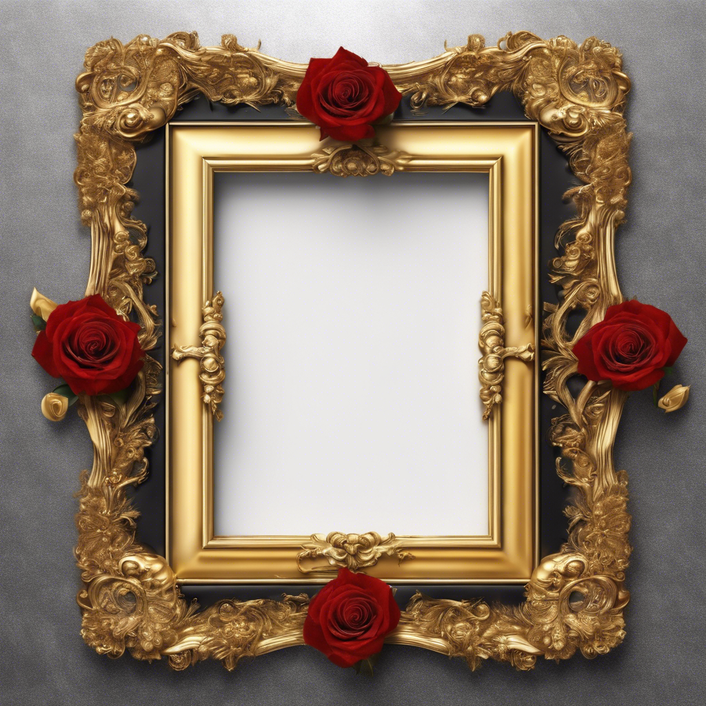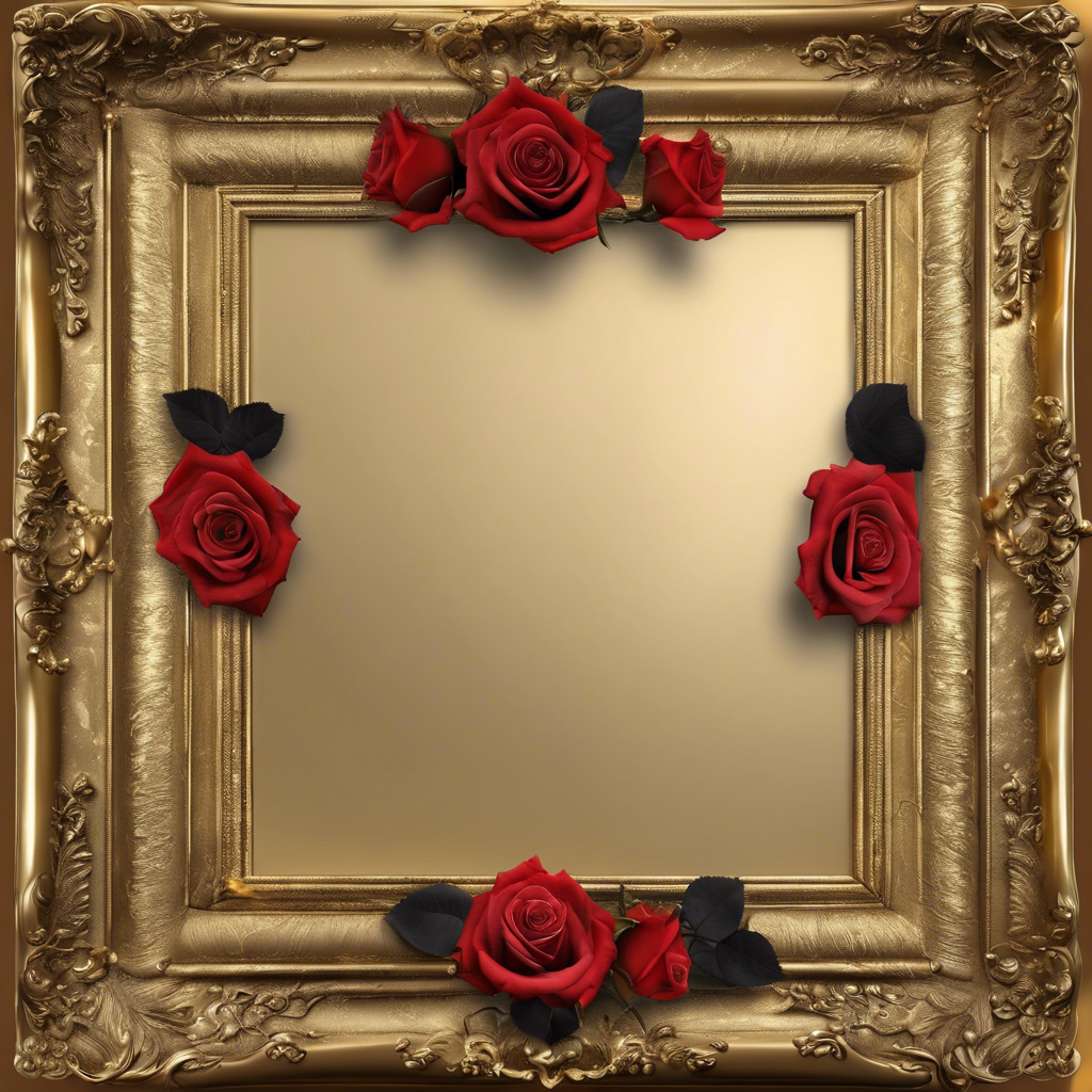 Altın Renkli Çerçeve ve Güller - Frame V2805202416N424