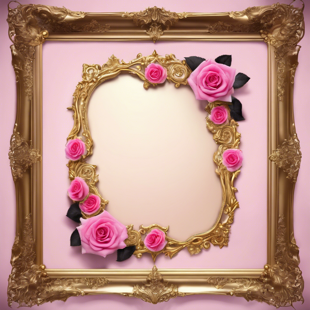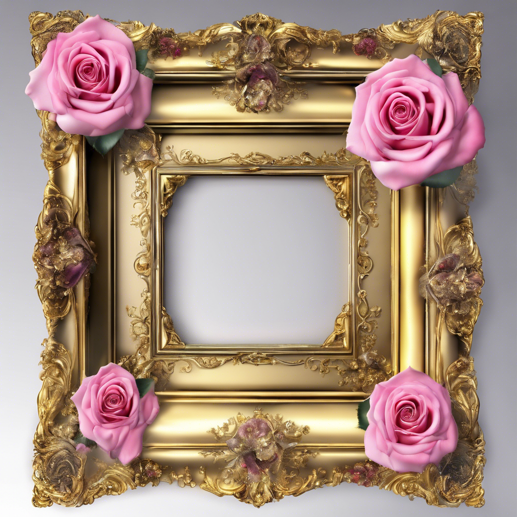 Altın Renkli Çerçeve ve Güller - Frame V2805202416N424