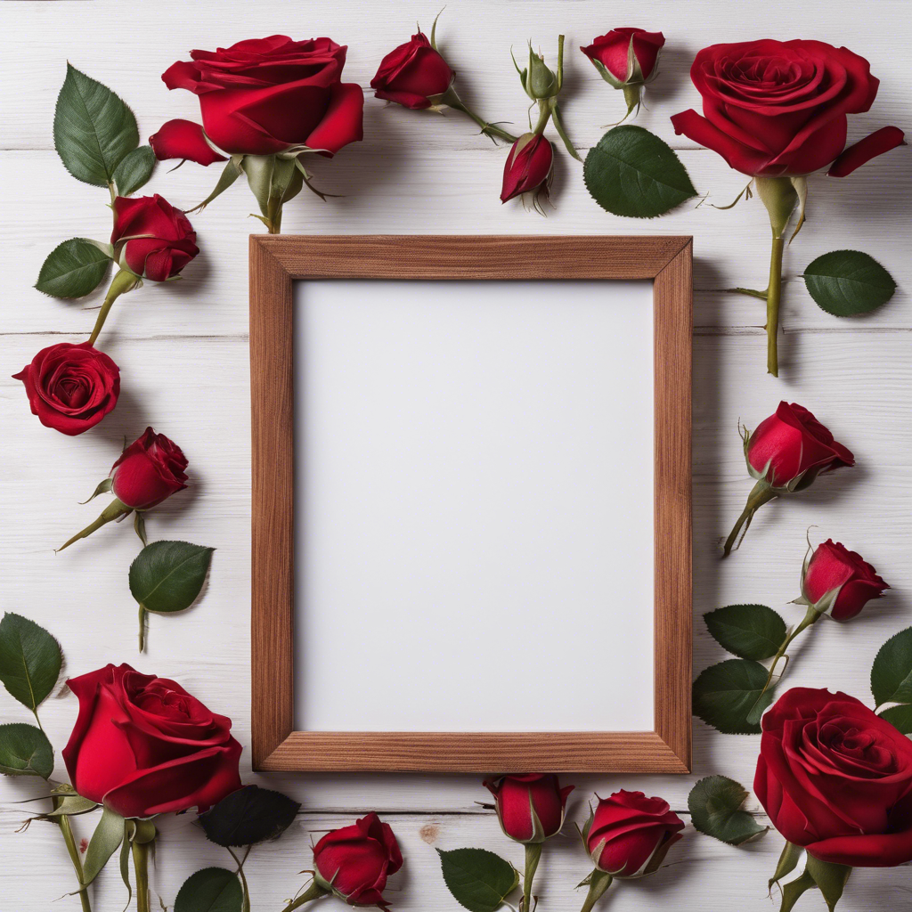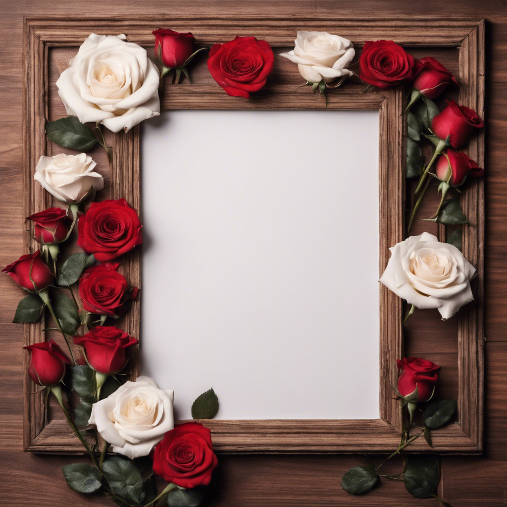 Ahşap Çerçeve ve Güller - Frame V3005202417N5335