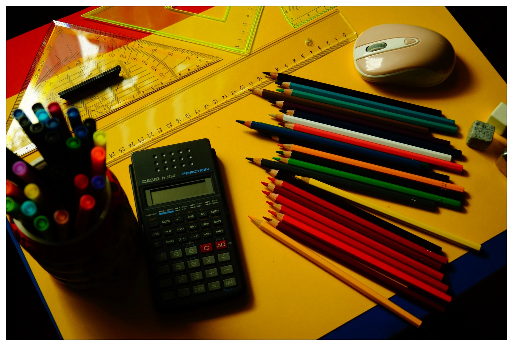 Grafik Grafiker Renkler Renkli Kalemler Renkli Kağıtlar Cetvel Açı Ölçen Gönye iletki Resimleri P3